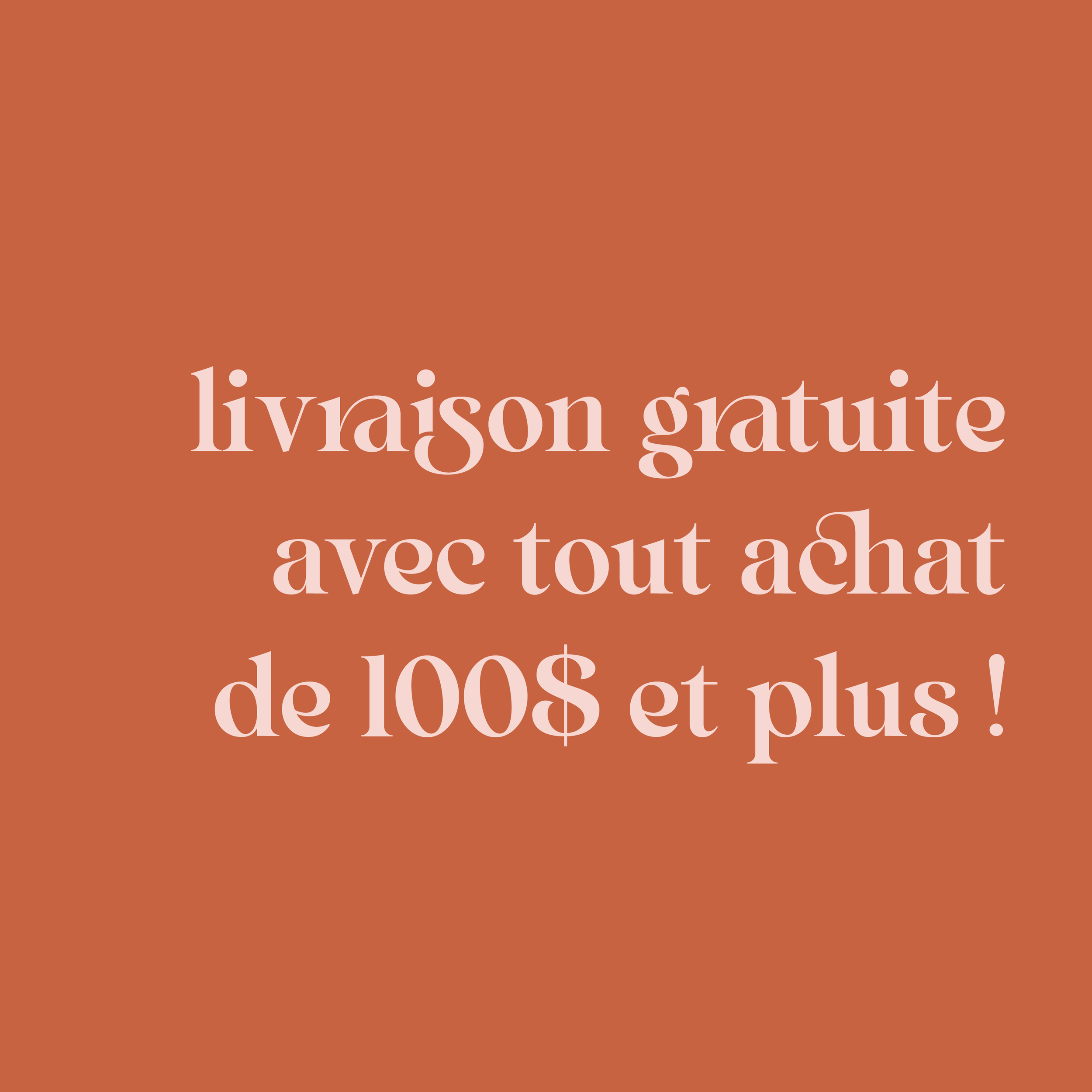 Pâques › livraison gratuite avec tout achat de 100$ et plus ! Image 1 sur 1 livraison gratuite avec tout achat de 100$ et plus ! 0,00 $ Ajouter au panier Ajout effectué !